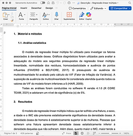 Elaboração de um arquivo em Word com a descrição dos resultados no padrão científico